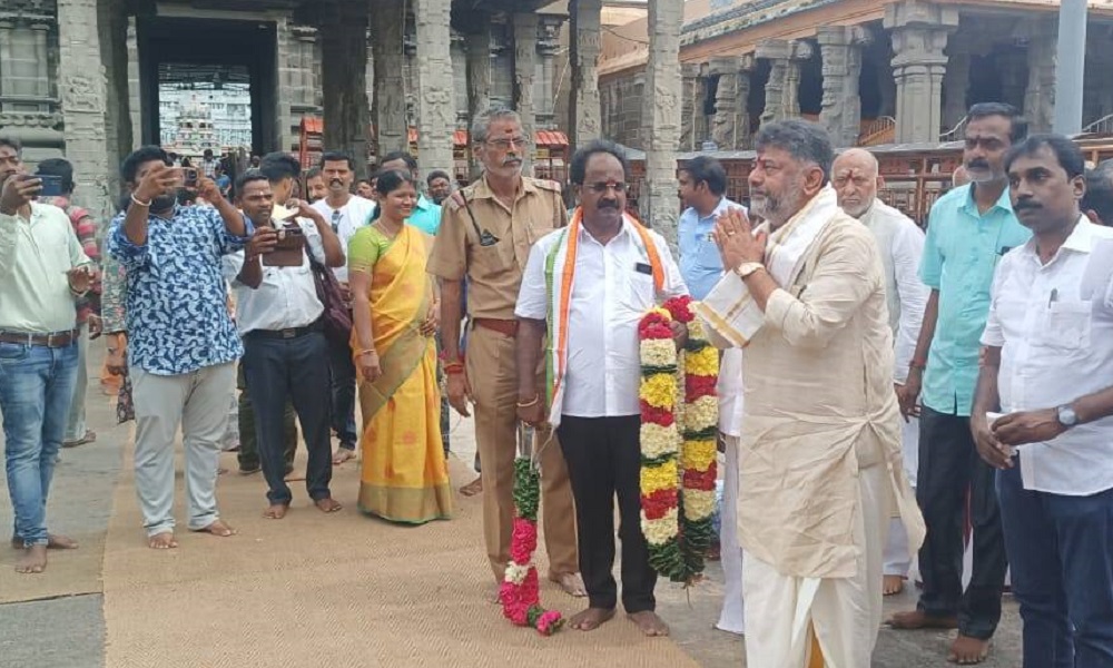 ತಿರುವಣ್ಣಾಮಲೈ (ತಮಿಳುನಾಡು): “ಕಳೆದ ವಿಧಾನಸಭಾ ಚುನಾವಣೆ ಫಲಿತಾಂಶಕ್ಕೆ ಮುಂಚಿತವಾಗಿ ಈ ದೇವಾಲಯಕ್ಕೆ ಭೇಟಿ ನೀಡಿ, ರಾಜ್ಯದಲ್ಲಿ ಉತ್ತಮ ಆಡಳಿತ ಮಾಡುವ ಶಕ್ತಿ ದೊರೆಯಲಿ ಮತ್ತು ಸಮೃದ್ಧಿಯಾಗಿ ಮಳೆ ಬೀಳಲಿ ಎಂದು ಪ್ರಾರ್ಥಿಸಿದ್ದೆ. ಈ ಕಾರಣಕ್ಕೆ ಮತ್ತೆ ದೇವರ ದರ್ಶನ ಮಾಡಿದೆ. ಎಲ್ಲರ ಒಳಿತಿಗಾಗಿ ದೇವರಲ್ಲಿ ಪ್ರಾರ್ಥನೆ ಸಲ್ಲಿಸಿದೆ” ಎಂದು ಡಿಸಿಎಂ ಡಿ.ಕೆ.ಶಿವಕುಮಾರ್ ಅವರು ಹೇಳಿದರು.