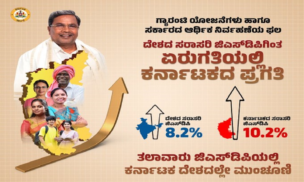 ಕರ್ನಾಟಕದ ತಲಾ ಜಿಎಸ್ಡಿಪಿ ದೇಶದಲ್ಲೇ ಅತ್ಯಧಿಕವಾಗಿದೆ. ಗ್ಯಾರಂಟಿ ಸೇರಿದಂತೆ ರಾಜ್ಯ ಸರ್ಕಾರದ ಹಲವು ಜನಪರ ಯೋಜನೆಗಳು ಅಭಿವೃದ್ಧಿಯ ಫಲ ಎಲ್ಲಾ ವರ್ಗಗಳಿಗೂ ತಲುಪುವುದನ್ನು ಖಾತ್ರಿಪಡಿಸಿವೆ. ಆರ್ಥಿಕ ಅಭಿವೃದ್ಧಿ ಮತ್ತು ಸಾಮಾಜಿಕ ಪ್ರಗತಿಯನ್ನು ಒಂದುಗೂಡಿಸುವ ಕರ್ನಾಟಕದ ಆರ್ಥಿಕ ಮಾದರಿಯ ಯಶಸ್ಸನ್ನು ಇದು ತೋರಿಸುತ್ತದೆ.