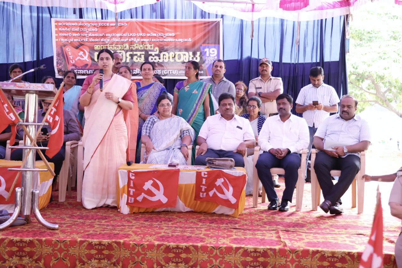 ಸರ್ಕಾರಿ ಶಾಲೆಗಳಲ್ಲಿ ಹೊಸದಾಗಿ ಎಲ್ ಕೆಜಿ, ಯುಕೆಜಿ ಆರಂಭಿಸುವ ಕುರಿತ ಆದೇಶ ರದ್ದು ಮಾಡುವುದು ಸೇರಿದಂತೆ ವಿವಿಧ ಬೇಡಿಕೆಗಳನ್ನು ಮುಂದಿಟ್ಟುಕೊಂಡು ಕರ್ನಾಟಕ ರಾಜ್ಯ ಅಂಗನವಾಡಿ ನೌಕರರ ಸಂಘ- ಸಿಐಟಿಯು ನೇತೃತ್ವದಲ್ಲಿ ಅಂಗನವಾಡಿ ಕಾರ್ಯಕರ್ತೆಯವರು ಬೆಂಗಳೂರಿನ ಫ್ರೀಡಂ ಪಾರ್ಕ್ ನಲ್ಲಿ ಪ್ರತಿಭಟನೆ ನಡೆಸುತ್ತಿದ್ದರು.